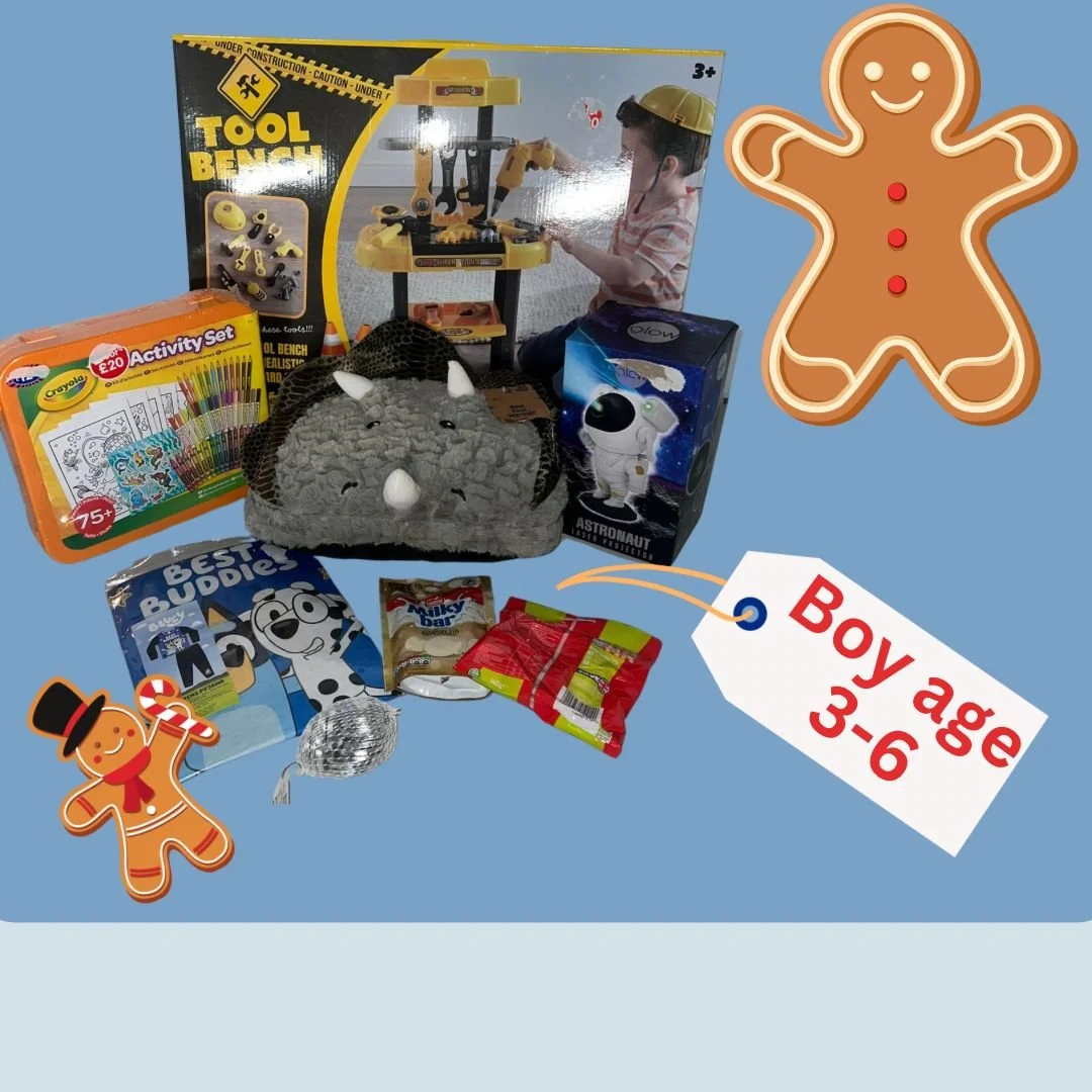 If you would like to buy a gift to donate to the campaign please pledge your gift via the online form to the right. This allows us to plan for the gifts to be given to families. Please see below some examples of gifts, however any size or amount counts. Please see examples below. We also create Christmas eve boxes if this is something you would like to donate.